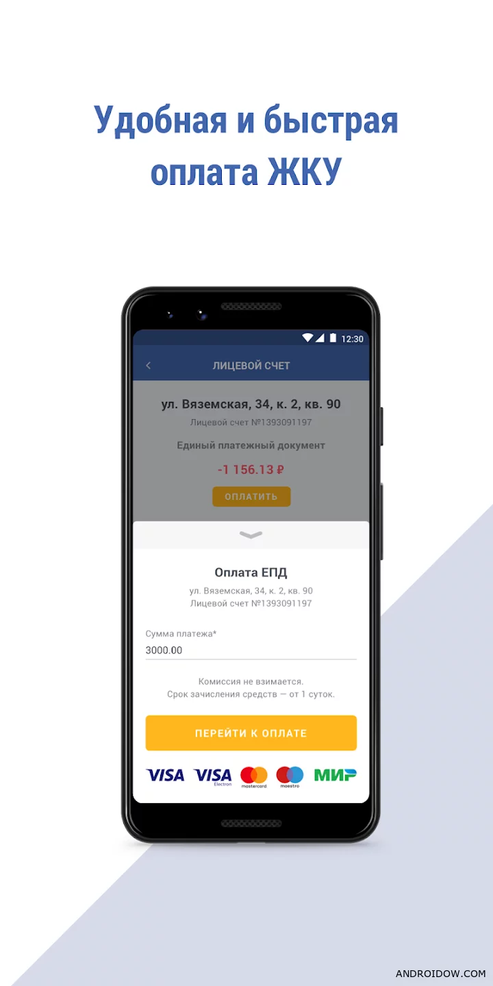 Приложение объединяет все основные задачи, связанные с коммунальными услугами: от оплаты счетов до передачи показаний и заказа справок.