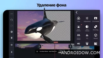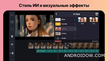 Этот видеоредактор отлично подойдёт как для начинающих, так и для опытных пользователей, которые хотят получить максимум возможностей без необходимости переходить на ПК. Интерфейс полностью переведён на русский язык, что делает навигацию быстрой и простой даже для тех, кто раньше не работал с монтажом видео.
